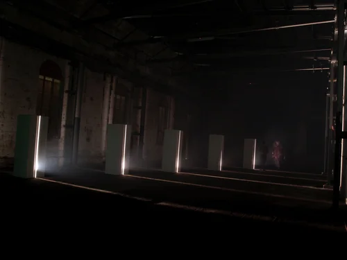 This installation consists of trompe-l'œil video projections of gallery’s doorways.